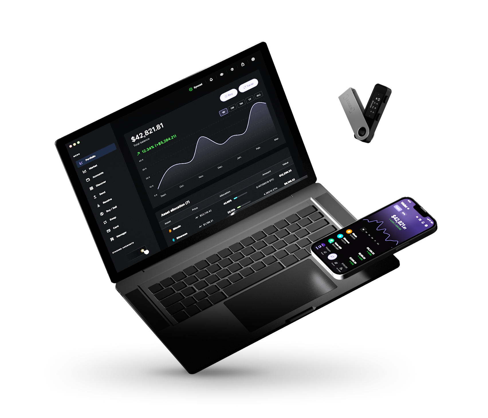 Store and manage Bitcoin, Ethereum, USDT, and thousands of tokens in one secure device.