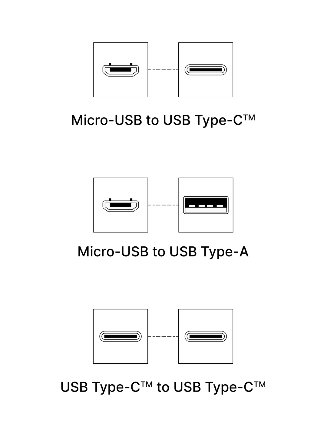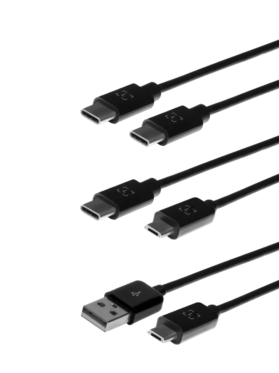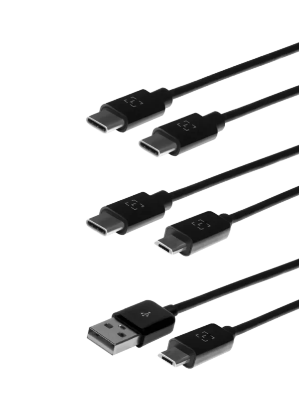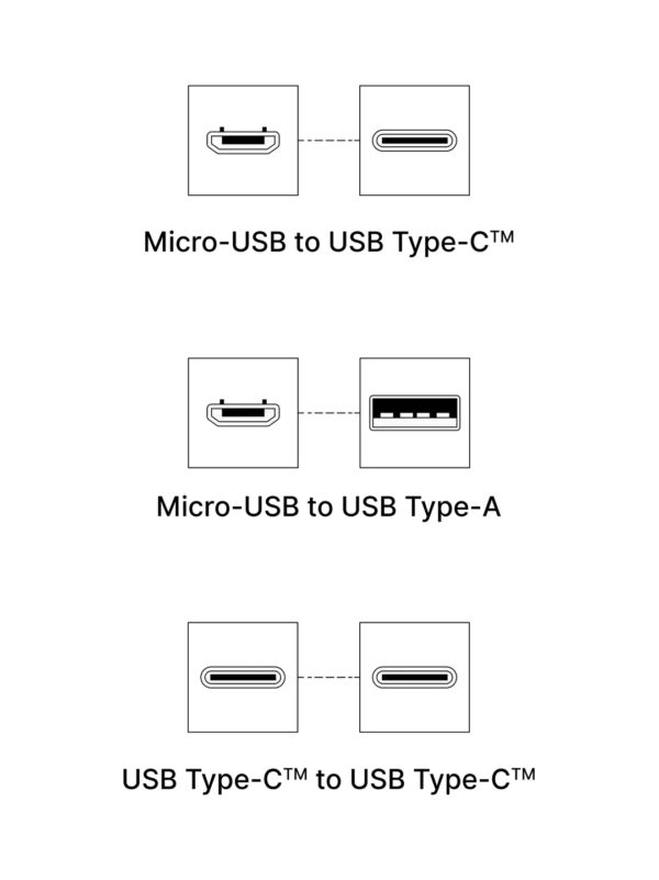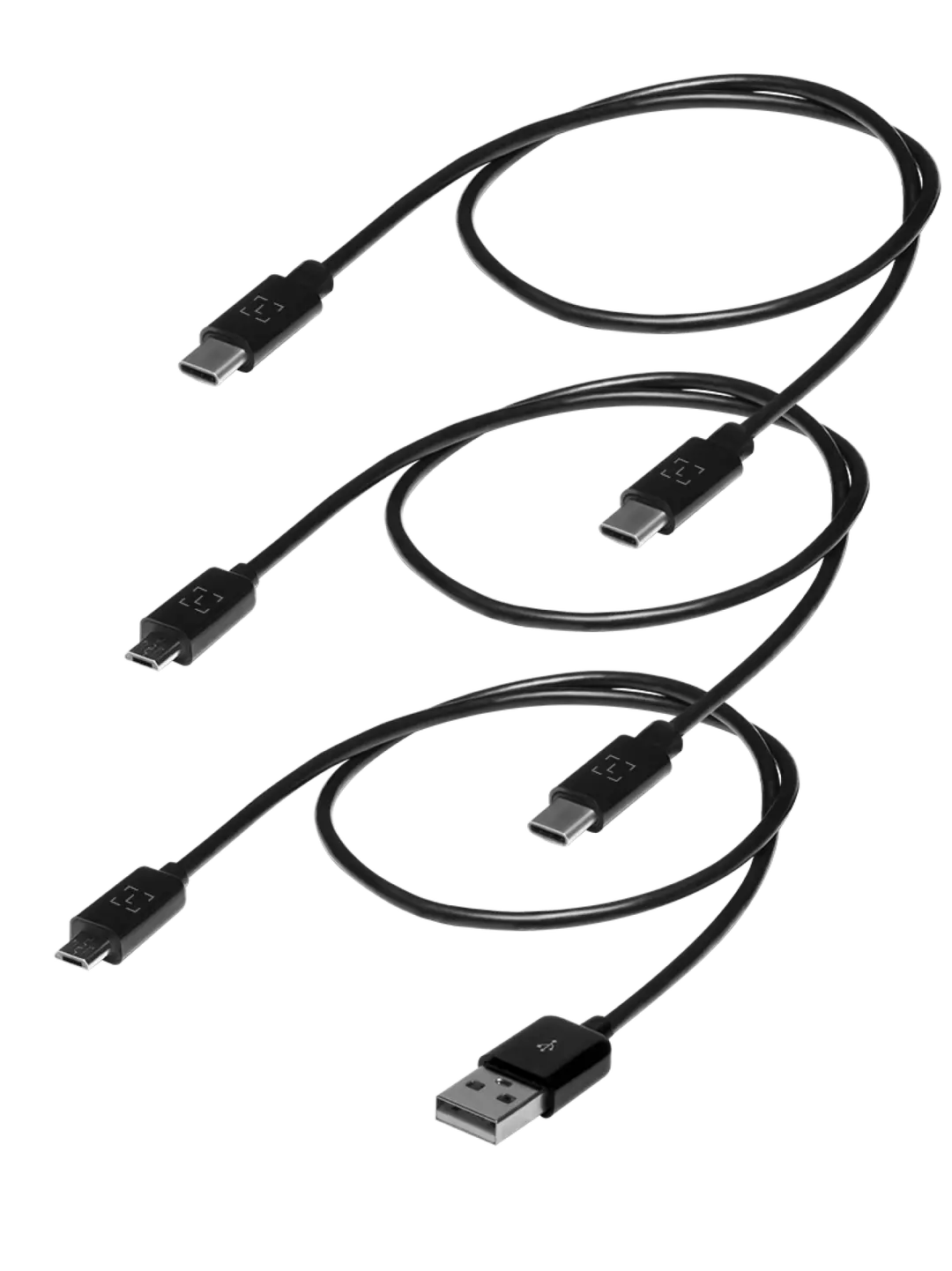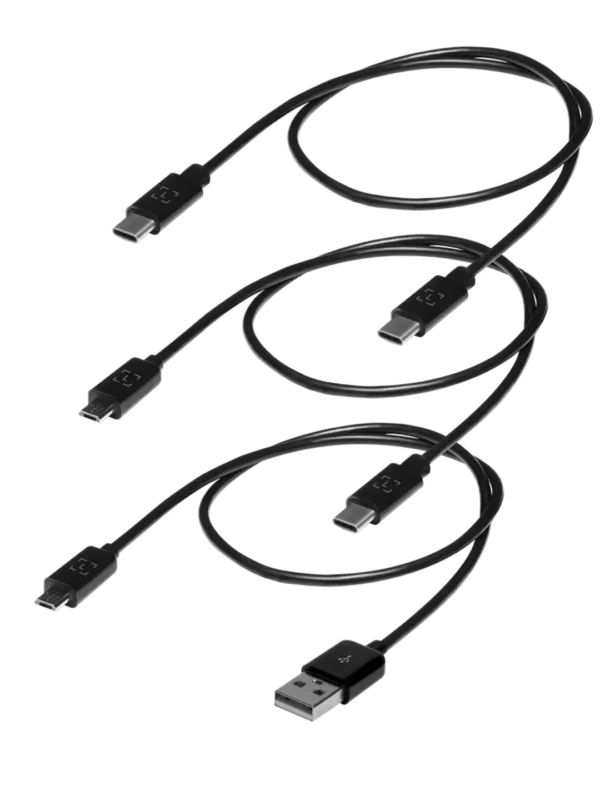 A set of 3 different cables to help you connect your hardware wallet to your Android phone or laptop: micro-USB to USB-C, micro-USB to USB-A and USB-C to USB-C.