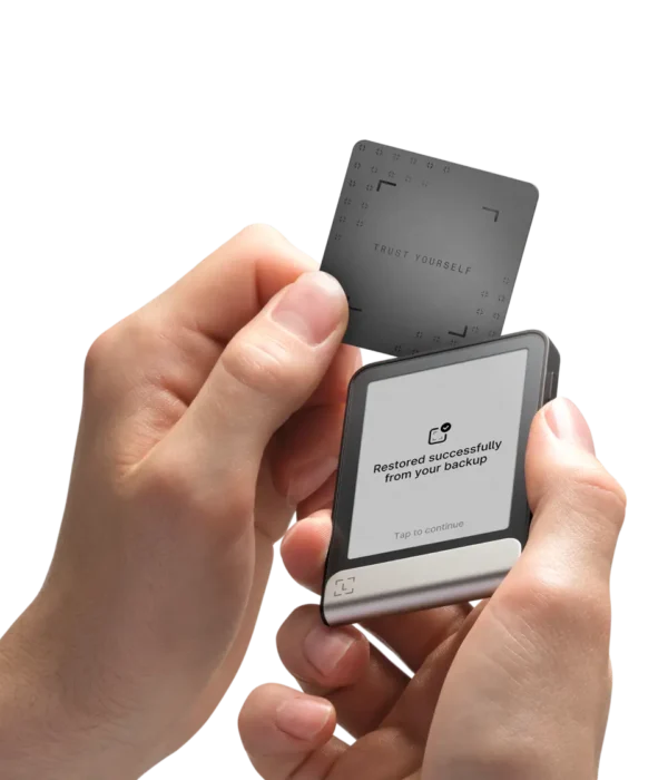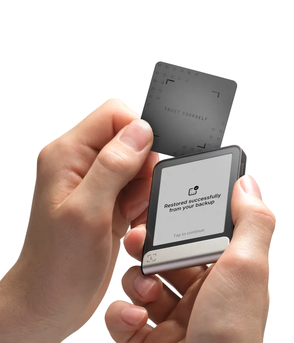 Your private backup to restore access to your assets with a quick, simple tap. PIN-protected, NFC-enabled, Secure Element encrypted.